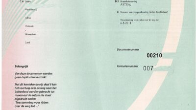 Dowód rejestracyjny na nazwisko (Kentekenbewijs Deel I B)